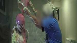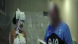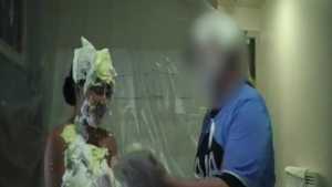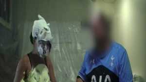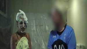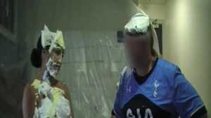Important Note: The thumbnails *don't* show the whole image, only the top half for some reason. Please click any thumbnail to see the full size image showing everything. In the video you see everything! Kayla Louise plays a game of "Categories" with Mystery Man. The players must come up with answers in a category, and whoever hesitates, repeats or gives a wrong answer gets pied. Kayla, and Mystery Man, get thoroughly pied, and as the video progresses, Kayla's clothes come off... even her knickers. As she is the overall loser, she gets pied at the end too.