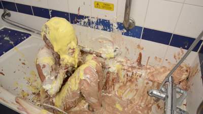 Fortunately there is lots! The 3 girls get quite brutal messing each other up in this game until the end when it all descends into anarchy and it's just a huge food fight.
