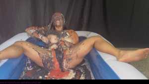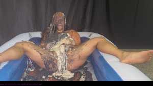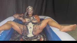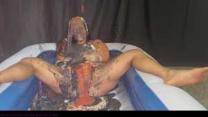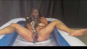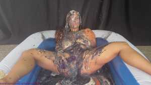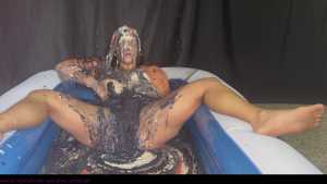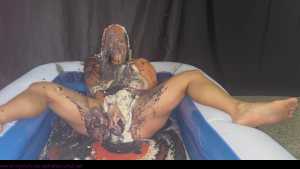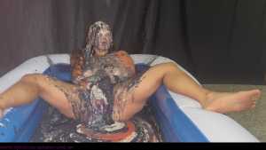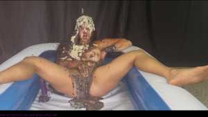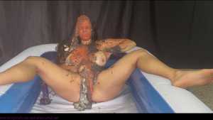 Gaby challenged us to throw our most disgusting slops all over her, confident she'd still be able to wank herself to climax. We gave it our best shot with refried beans, pasta sauce, porridge and some black slop leftovers... but somehow she took it all... and got herself off!