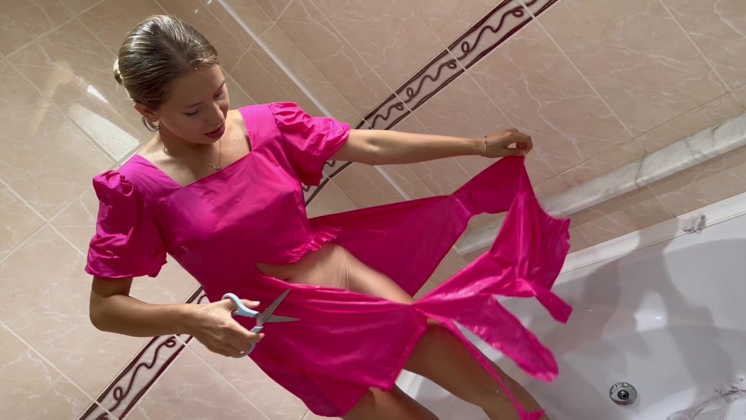Wetlook in Sheer Dress and Pantyhose! No Underwear!