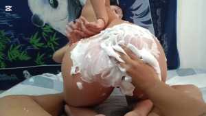 After a great blowjob, Ghostface and Candy start to connect better, so he proceeds to masturbate her with her foam-filled ass and vagina, then fucks her pied filled vagina while her ass bounces, making the foam bounce back with every thrust.