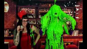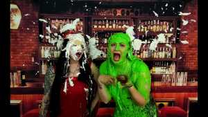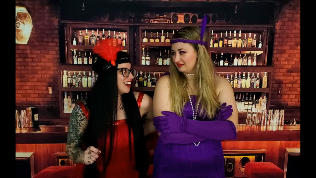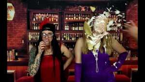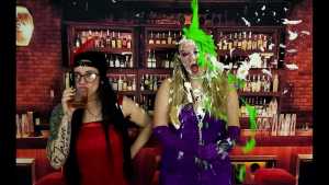 In this speakeasy, there's one thing that's for certain... these two girls are thirsty!  Their only problem?  They don't have any money!  So, they end up flirting for drinks. Which does work for one of them... at first. And since this speakeasy also happens to be comedy club, there's plenty of thrown pies and buckets of green chunky slime available to trash both of these two broke flappers.