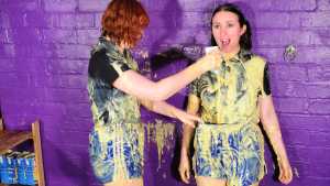 Miss Abigail takes the first mess, as she willingly allows Honeysuckle to empty an entire can of custard not just into her shorts, but the knickers she's wearing under them, from where the custard will slowly leak out and mess her shorts up from within. One full can goes down the front, and another goes in the back too.