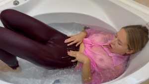 Wetlook in Sexy Pink Lingerie and Stockings! Hot Feet!