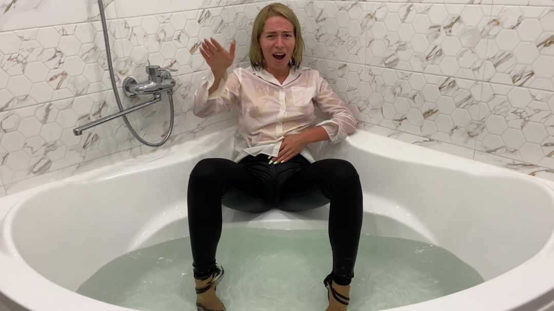 Dunking and Hair Washing! Wet Sheer Top and No Bra!