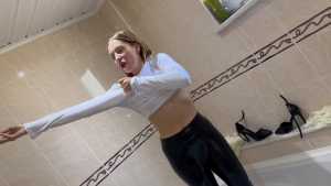 Wetlook! Cameltoe! In Cotton Leggings and Sheer Shirt!