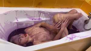 I Masturbate in Milky Bath! Dive and Make Bubbles!