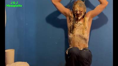 In yet another scene of game forfeits, J starts out by sitting in a shaving cream and chocolate syrup pie. This is followed by pancake syrup down his underwear, pudding poured over his chest, a shaving cream and chocolate pie in his face, chocolate pudding over his head, chocolate syrup over his head, and a bright green cake batters sliming to finish! Scene also includes solo male masturbation content.
