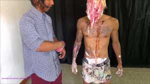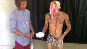 Rafa says that concludes his demonstration of a wam session. Oisin says "Oh "You should have used the cake batter" Rafa says "oh... good idea," and he picks up the cake batter... but instead of using it on himself, he slowly pours the bucket of cake batter over Oisin's head.