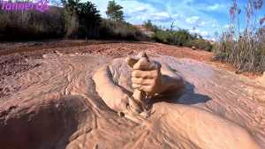 Fully-clothed and sinking scene. (clothes come off later in the video after I submerge) and then I masturbate. The video then cuts to me clean and riding my e skateboard. I decided to go for one last farewell sink at the quarry and just get myself smeared in mud. I made sure this visit was fully worth it. I've been wanting to sink here with clothes on. I get a slight kick out of destroying a full set of clothes in creamy buttery clay. So off I went. It was so much fun. The mud still had some warmth left in it. My clothes got saturated in clay so it started to pull me further down until It took me all the way under. Luckily there was a ledge nearby that I grabbed onto and I was able to pull myself out and take my clothes off. I started to rub this mud all over my sexy mud covered body. If you saw me out here would you join in and give me a massage, or tie me up and watch me struggle as I go all the way under leaving bubbles in my wake?