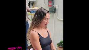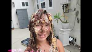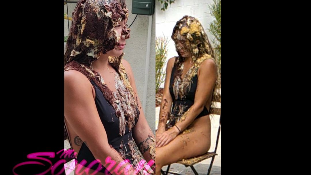 Part 1. You may have seen Adelina Cortez on Reality TV and in commercials, "butt" never like this. Adelina is irresistible in a thonged black one piece swimsuit. So irresistible that even the mosquitoes can't get enough of her, Ass-pecially that bubble. She soldiers through, like the experienced pro she is, and we make her head into our own delectable sandwich filling between pudding-filled cracker-crusts. Here, she survives her first of two smashes, with some globules from the ground recycled on her head. Her sincere reaction to her first messy is priceless. But hey, at least it provides relief from the dastardly mosquitoes. Two angles, and still closeups... and some surprises at the "End."