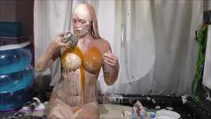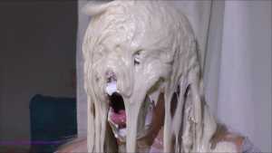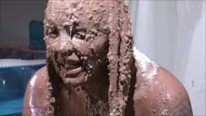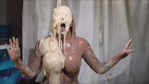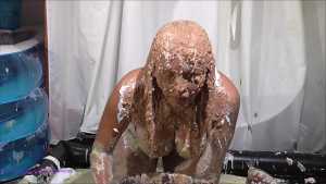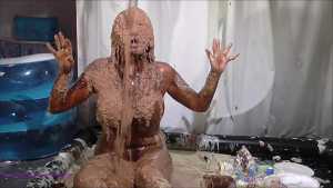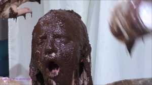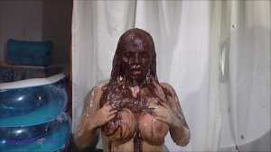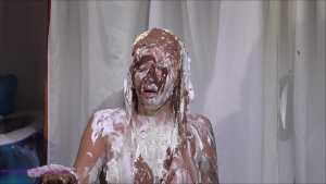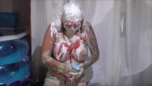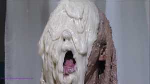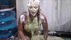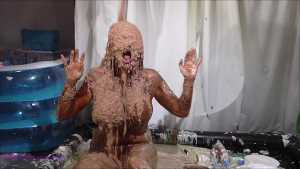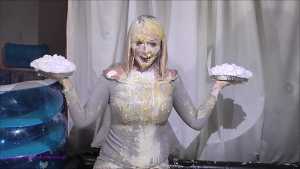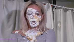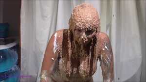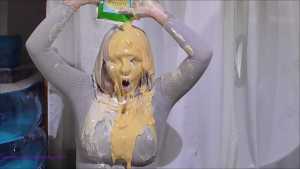 Over half an hour of incredible wam action, plus amazing 2nd camera footage too. Louise Lee is determined to gain a promotion, as she is fed up on her boss Molly setting her up. There's a meeting to pitch presentations on the best way to give a trashing, and Louise decides the only way she can prove she has the best ideas is to turn up, utterly trashed from head to foot. Her off camera friend throws a couple of pies at her and makes suggestions, but this show is all Louise's. I can't list all the substances she uses as there are too many (and we ran out of preview pics to show you) but among them there's pies, custard, rice pudding, chocolate, porridge, cake batter, yoghurt, trfile, ice cream sauce and loads more. The coverage is incredible and along the way she ditches her ruined dress and knickers, and ends totally nude and totally covered. I really really hope Louise got that promotion.