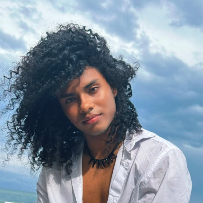 Lucas is a very muscled afro guy who said yes to get messy for the first time. He starts by painting his naked body yellow and then gets dressed. He dips his shoes in blue slime and then submerges his head in a bucket of white slime. Finally, he pours all the blue slime on his head.
