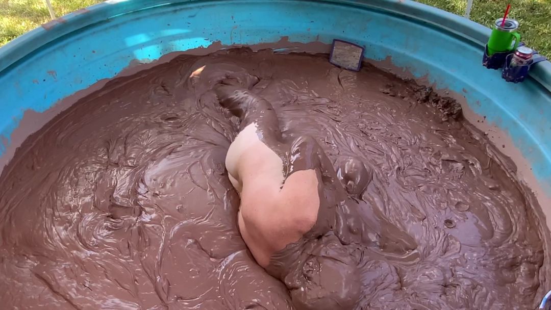 It is a beautiful south Texas fall day. McMudd has been tending the creamy chocolate mud pool carefully for a month now, adding clay and water and mixing it to just the right consistency. With the warm weather heading out soon, it is time to get a few final deep and satisfying wallows in this amazing muck. McMudd steps in, wanders around a bit in anticipation, before kneeling down and submitting his clean body to the thick mud like a big glue trap. Struggling at first, he surrenders folding himself right under the heavy cream, hearing only the muffled sounds beneath the glistening surface. Moving around in the pool continues until he has obliterated his face and open mouth several times with huge heavy handfuls. More ravenous dunking and tasting continues until he needs to sculpt a stiff set of clay teeth covers to force deep into his mouth. Finally stuffed, he still needs a more complete oneness with the mud, so it's back under the tasty mud for more burrowing, splattering, chewing, stroking, and a final explosion before he lays limp and plastered, happy to be in his truly natural home! There will be a second video from this same mud-lusty day, soon-- be on the lookout for Finger Lickin' Good!