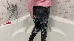 Wetlook in Sheer Top and Tight Leggings! No Bra!