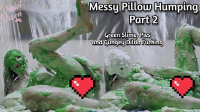 "Alternate angle of slimy and pie-filled pillow humping and dildo fucking!"