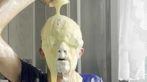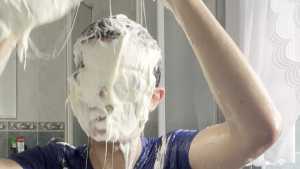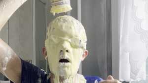 I get into another slime bath, rolling around having a lot of fun before a pie in the face, then pouring a few cartons of custard all over my head, allowing them to mix into the slime bath before I submerge myself again to have even more fun.