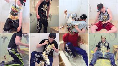 After a long while I finally got messy again! In a full Adidas gear! Wearing my brand new black/gold Adidas tiro 19 pants, red Adidas shorts underneath, black Adidas socks, grey Adidas shirt and black/white Adidas jacket and a blue Adidas cap. Getting messy with some yoghurt and finally jerking off and shooting an amazing load of cum on my Adidas cap.