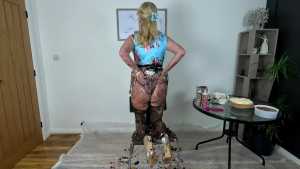 Sitting down my chair of course I have to sit right on down into two cakes enjoying the feeling of the squishy cake engulfing my pussy as I rub back and forth.