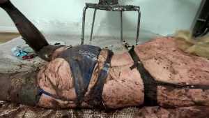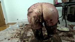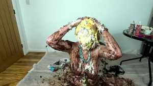 What a dirty mess I'm in now! as I scoop up more of the messy cake over me.