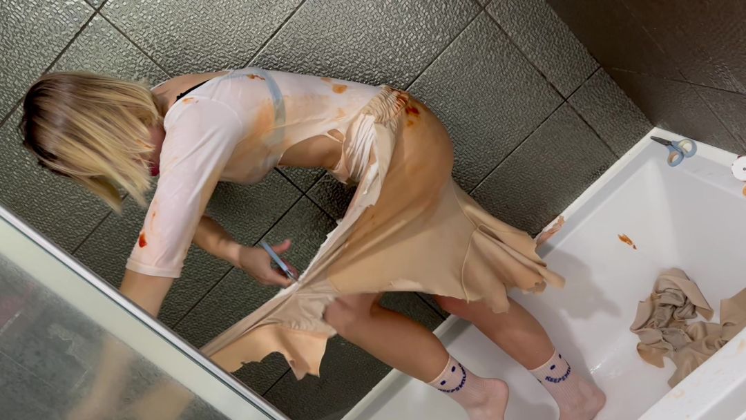 Messy with Viscous Slime in White Outfit! On Hair Too!