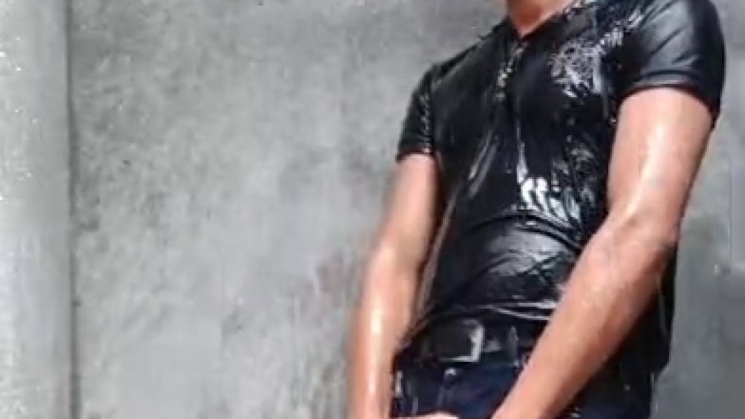 Michael wants to take a shower and does so wearing his polo shirt and jeans. As soon as he starts to get wet, he goes all in, turns the shower on full blast, and gets wet several times, fun and exciting, with his polo shirt and shiny jeans on his body. He wants to shampoo his hair and slowly gets covered in suds. Then the rinse under the water is fantastic! Super!