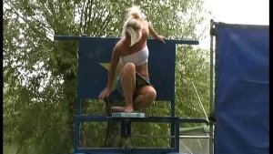 Join Michaela and Claire as Michaela plays Simon says. Each time she makes a wrong move she is dunked into the clay. This was the first time we had filled the tank with clay and it was the girls first shoot with us. Michaela does go topless and nearly loses her knickers as they get so heavy with all the clay. This clip was also filmed on the banks of the Thames with passing boats watching. This really adds an element of fun to the film.
