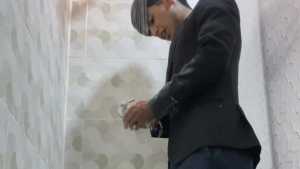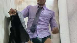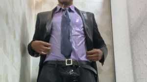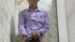 Mike looks incredibly elegant today in his suit. His shower is fantastic, he gets completely wet and plays with water. Especially at the end, when he takes off his tie and has fun playing with his fantastic and horny jewel!