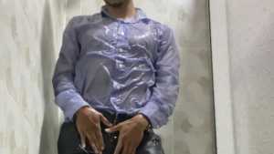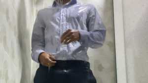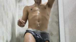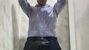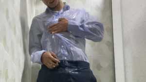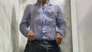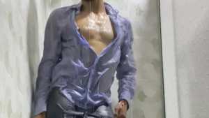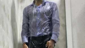 Mike is dressed elegantly and takes a super shower. The wet look is stunning right from the start, and his often-showered wet feet are also very sexy. The water slides down until it soaks all over his pants, and when the striptease begins, his wet body is spectacular, and he's even turned on. Sexy!