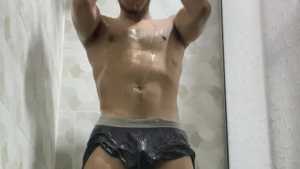 Mike is back in the shower, fully-clothed. Very eager to get wet, as always, he'll have fun with the water and then shampoo. He also shows off his feet often, and at the end of the video, when he's in his boxers, he's super sexy and hot! Gorgeous, very wet and sexy!