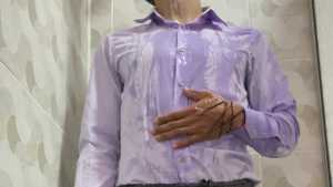Mike takes a nice shower fully-clothed, and this time he chooses to wear a very elegant-shirt and pants. As soon as he turns on the water, he immediately starts having fun and touching his clothes, which stick to his sexy body. Fun and sensuality are guaranteed with Mike. At the end, he'll delight us with his wet body and his fabulous soaked boxers!