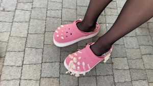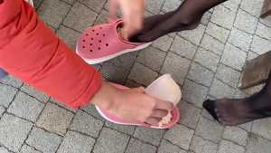 Wetlook in Sexy Leopard Pants and Red Heels! Wet Feet!