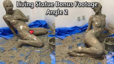 This takes place after I got "frozen" as a living statue. I couldn't resist adoring my new Golem like features and the pudding consistency of all the creamy bentonite clay I mixed up. After a few moments as a statue with my long legs splayed open, I play with my messy and hairy pussy and fuck my muddy dildo inside my hole for a bit before enjoying the sensations and how I look completely transformed and covered again.