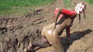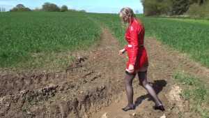 See Xxx HD movie XXX078 for muddy sex fun as Mrs. CC joins her hubby who wears a pink cardigan, white dress, wig, bra and white tights, plus pink panties!