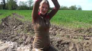 We have a very nice muddy bum shot before she pours mud over herself with her shoe, as she lies back in the muddy pool.
