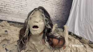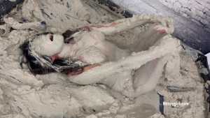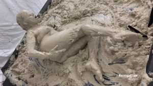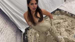 Sofia never played in the mud as a kid, but she is about to as an adult. She is in a sexy tight dress and heels as she steps into the mud pool. She walks about in her heels and then takes them off so she can feel the mud on her bare feet. She then sits down for some sexy slathering all over her body. She strips out of the dress and covers the rest of herself up to her neck. She then gives herself muddy face plants and the transformation is complete. She looks like a sexy mud creature wallowing in the mud now. You get to see every inch of her mud covered body.