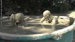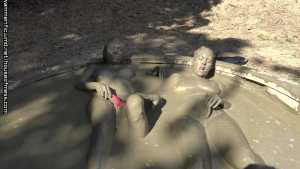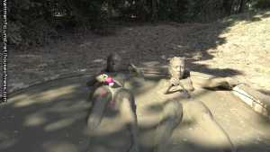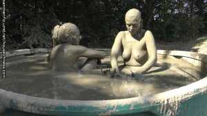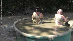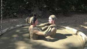A nice, relaxing day in the giant mud pool gets the girls even more relaxed after they pull out the toys, make out and make each other cum!  Brooklyn talks Syren into going into the  mud for a type of relaxing "turn off the world" day... little does syren know that Brooklyn brought a couple of things that DO turn on!  The girls get in slowly with their feet first and sit on the side. Showing off their beautiful, naked bodies. They sloooooowly get in, legs then ass and then they are on their knees. They start to rub mud into each others breasts, arms and arms.  Brooklyn comes up with a plan to grab handfuls of mud and make syrens hair into a muddy bee hive!  Syren does it back to Brooklyn. They start to get closer... They lay beside each other, their bodies floating, showing off every curve, their nipples, the line down their pussies...