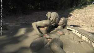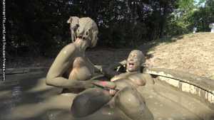 Brooklyn and Syren keep reaching over to touch the other... and Brooklyn steps out of her mud haze to grab a couple of vibrators -one for each of them!  Syren is a little nervous but?  She gets to it!  The girls start to moan and  moan louder and louder... they are trying to catch their breath as they are already so horny from all the foreplay but they dont want to cum yet!  Brooklyn is really in a mood and she feels like Syrens toy isnt good enough for this mud. So?  After Brooklyn comes in for a nice, deep, loaded with tongue kiss to Syren?  She pushes away Syrens toy and starts to use her own, personal vibrator on Syren!  You can tell by Syrens moans and reaction... that this toy?  Is the much better one!  Brooklyn french kisses her agian, rubs her tits, andf her hands down her body. She rubs her tits, smears the mud all over her legs and grabs her hair. She asks Syren how that one feels and Syren is loving it!  To say the least!  Brooklyn can tell she has almost got Syren to cum so she gives her some words of encouragement- and Syren cums in the mud!