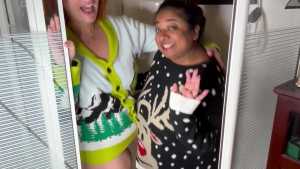 Cinnamon and Masala do a wet look shower scene together this time! They are wearing Christmas ugly sweaters to start celebrating the holiday season and panties. If you always wanted to see these two get close... you get your Christmas wish with this one!