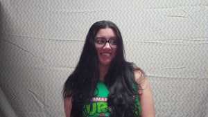 Wearing a Teenage Mutant Ninja Turtles shirt, the Wife is using her cutest "nerd girl" voice, while thinking back on the late 1980s and early 1990s. In particular, she wanted to be a part of the show "You Can't Do That On Television." She felt that getting hit with lots of slime would be cool and fun, and she says the magic words to have her wish come true.