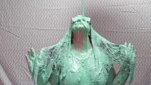 It ends with her mopping up the goo with her thick black hair, while sitting in the gunk on the floor.