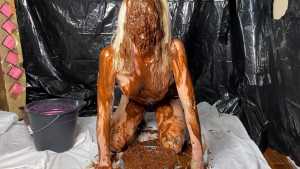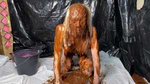 She really goes to town with the chocolate, getting absolutely amazing head to toe extreme coverage, not forgetting more pussy rubbing, because she can never resist. As a bonus, in the final 5 minutes she head dunks in a bucket of pink gunge then pours the bucket over her head, before rubbing her pussy from the rear.