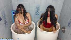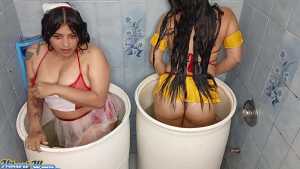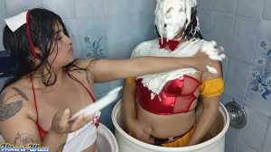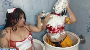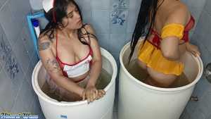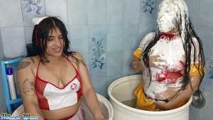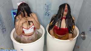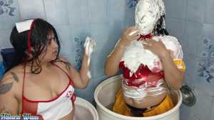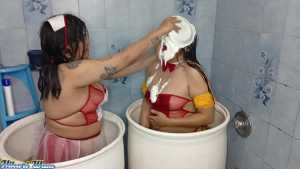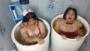 The nurse and Sofia the First will experience immersing themselves in their buckets for a sexy, cold bath, complete with their outfits and sexy moves.