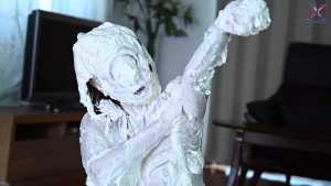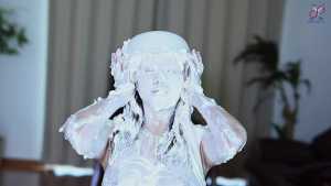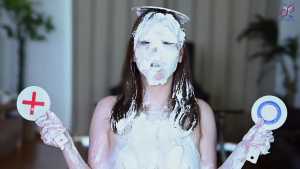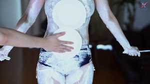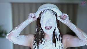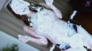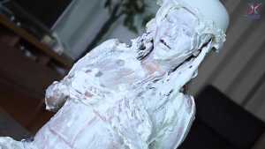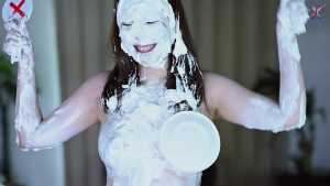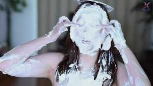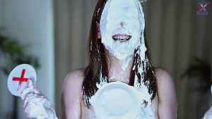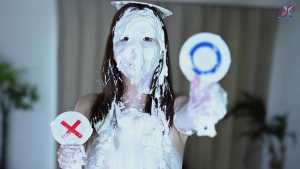 Continuing from the first half, the participants will take part in a true or false quiz, and if She gets the answer wrong, pies will be thrown at her face and body. After the quiz is over and all the pies have been thrown, She will have copious amounts of cream smeared all over their bodies, poured over her face... and will become cream-people whose entire body are covered in cream!