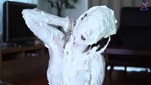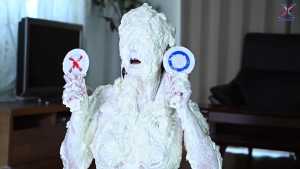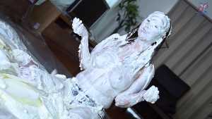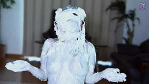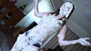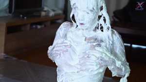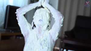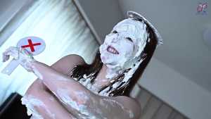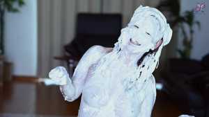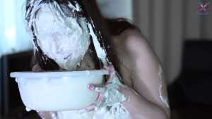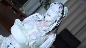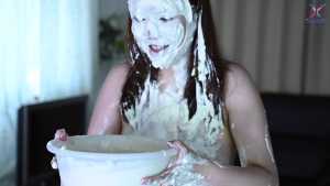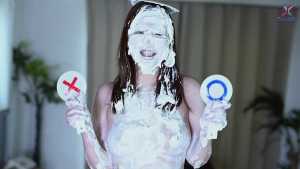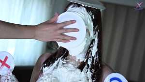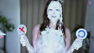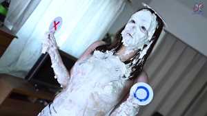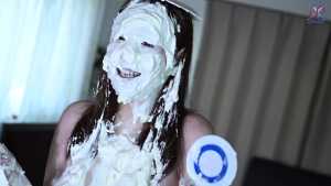 Continuing from the first half, the participants will take part in a true or false quiz, and if She gets the answer wrong, pies will be thrown at her face and body. After the quiz is over and all the pies have been thrown, She will have copious amounts of cream smeared all over their bodies, poured over her face... and will become cream-people whose entire body are covered in cream!