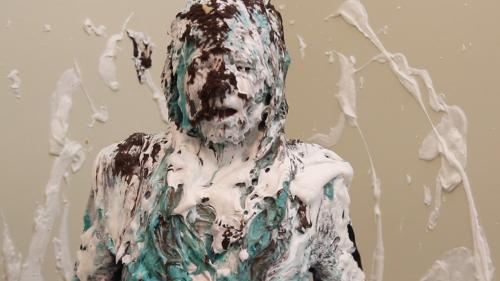 Kiernan, a goth/punk alt model, joins us in the Slophouse studio to see what sploshing is all about. Kiernan gets several sloppy pies smashed in her face, and enjoys it more and more as each pie smacks her face. She shampoos it into her curly red hair, and prepares for a sliming. After a few more pies she gets on the ground and begins to play around in the slop. Kiernan gives us some great reactions throughout this video and thoroughly enjoys the experience. Its very sensual the way she repeatedly smashes handfuls of slop into her face while releasing deep breaths afterwards.