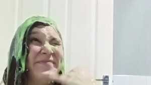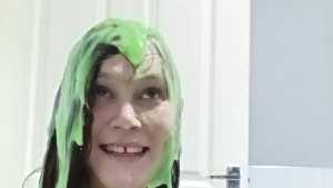 Gorgeous girl dressed as a princess, wearing a sparkling gown and tiara getting gunged and messy for the very first time.