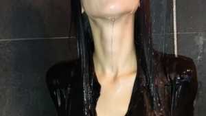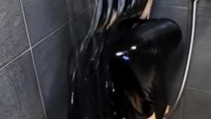 Another moment in the shower, this time wearing leggings and a satin shirt. Soaked and enjoying the shower fully-clothed.