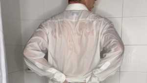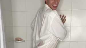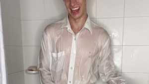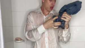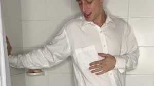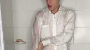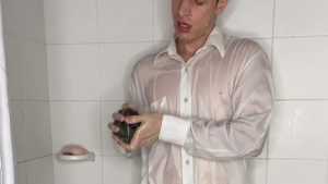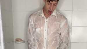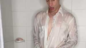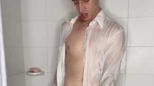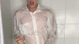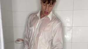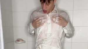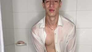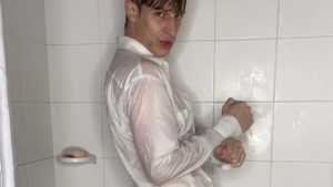 Ostin loves showering in a white shirt and jeans. He loves the sheer wet look and showing himself off like that. And today he gives us a fantastic show. The shower is incredibly exciting, and his sheerness makes us already imagine the ending, which will be spicy and super sexy. Great show!