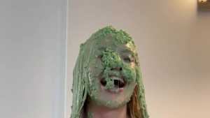 Newcomer Stacey joins us on The Slime and Pie Show! Stacey was curious about getting slimed and rest assured we were happy to oblige! Stacey gets 2 generous buckets of slime for a great debut scene.